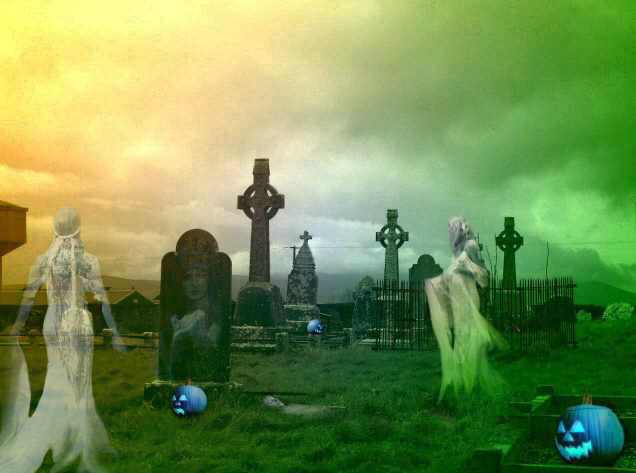 Asimismo, también creían que en esa noche especial los espíritus malignos, fantasmas y otros seres espectrales salían libremente a campar por el mundo terrenal y por tanto a aterrorizar a los hombres. Para aplacarlos y protegerse de ellos, se hacían grandes hogueras, al igual que en la noche del solsticio de verano, San Juan. Estas hogueras tuvieron su origen en rituales sagrados de la fiesta del sol. Otras formas de evitar el acoso de estos seres de ultratumba eran preparándoles alimentos, montando macabras escenografías y también disfrazándose para tratar de asemejarse a ellos y así pasar desapercibidos sus miradas amenazantes.