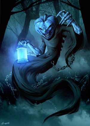 La Calabaza.- Según una antigua leyenda irlandesa, un hombre llamado Jack había sido muy malo y no podía entrar en el cielo. Tampoco podía ir al infierno, porque le había jugado demasiados trucos al demonio. Tuvo por eso que permanecer en la tierra vagando por los caminos, con una linterna a cuestas. Esta linterna primitiva se hace vaciando un vegetal y poniéndole dentro un carbón encendido. Jack entonces era conocido como «Jack of the Lantern» (Jack de la Linterna) o, abreviado, Jack-o-´Lantern. Para ahuyentar a Jack-o-´Lantern, la gente supersticiosa ponía una linterna similar en la ventana o frente a la casa. Cuando la tradición se popularizó en Estados Unidos, el vegetal con que se hace la linterna comenzó a ser una calabaza, la cual es parte de las tradiciones supersticiosas de Halloween. Para producir un efecto tenebroso, la luz de una vela sale de la calabaza por agujeros que conforman una calavera o una bruja.