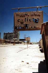 Lo que pasa, cuentan los pampinos, es que los espíritus mágicos viajan solos, montados en los fabulosos colores de la puesta de sol o en medio de algún árido cementerio pampino. Hay que buscar. Ir a un pueblo fantasma de la época (pintado de sepia o blanco y negro) y mirar entre los vestigios de una casa obrera… hasta una vieja etiqueta insinúa que allí hubo algo más vivo que las simples piedras.