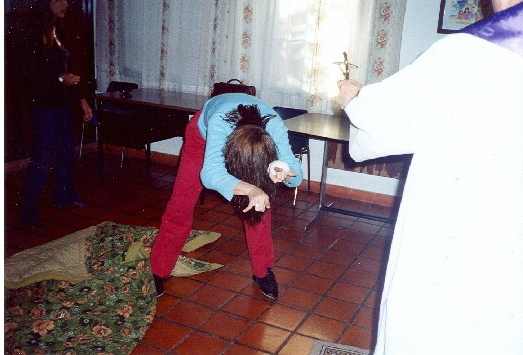 Daniela comenzó a desfigurarse. Mientras hablaba salía de su garganta una voz ronca, escalofriante. Emitía sonidos guturales, una especie de rugido. Se movía con una fuerza impresionante, al punto que el exorcista junto con otras cuatro personas asistentes casi no la podían controlar.