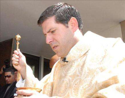 A principios de la pasada semana, la revista de farándula en español TVNotas publicó las fotografías del sacerdote y la mujer.Desde entonces el padre ha interrumpido sus labores religiosas y como director de la cadena de radio de la iglesia San Francisco de Sales. El jueves pasado, más de un centenar de feligreses se congregaron en apoyo del popular sacerdote frente al templo católico en Miami Beach, donde portaron pancartas y cantaron a coro «¡Lo respeto, lo perdono!»