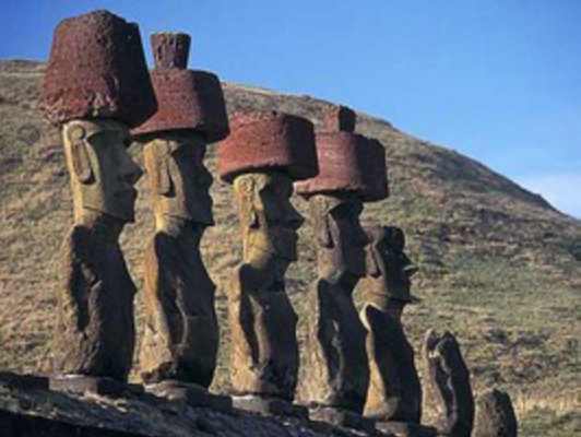 Científicos británicos han aclarado parte del misterio de las coronas rojas que ciñen los moais de la cantera «Puna Pau» de la Isla de Pascua, gracias al descubrimiento de un camino que se utilizó para transportarlas. Lo que sigue siendo una incógnita es cómo lograron levantar estas rocas de varias toneladas de peso hasta lo alto de los moais.