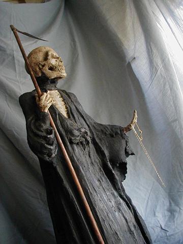 Es un santo pagano, como el Gauchito Gil, sólo que éste en verdad existió y aquel no. En su libro ‘Una voz extraña’, los investigadores María Julia Carozzi y Daniel Míguez aseguran que el primer registro de esa imagen data de 1735. Y explican que los rituales a la imagen de la muerte son múltiples, como atarlo y tenerlo amenazado hasta que cumpla lo pedido y colgarlo boca abajo en caso de que no lo haga.