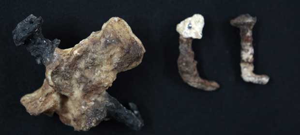 En la tumba se encontraron dos clavos de hierro, uno en el suelo y uno dentro de un osario, y, según la película, desaparecieron misteriosamente poco después. Jacobovici dice que los rastreó hasta un laboratorio en Tel Aviv de un antropólogo experto en huesos antiguos.