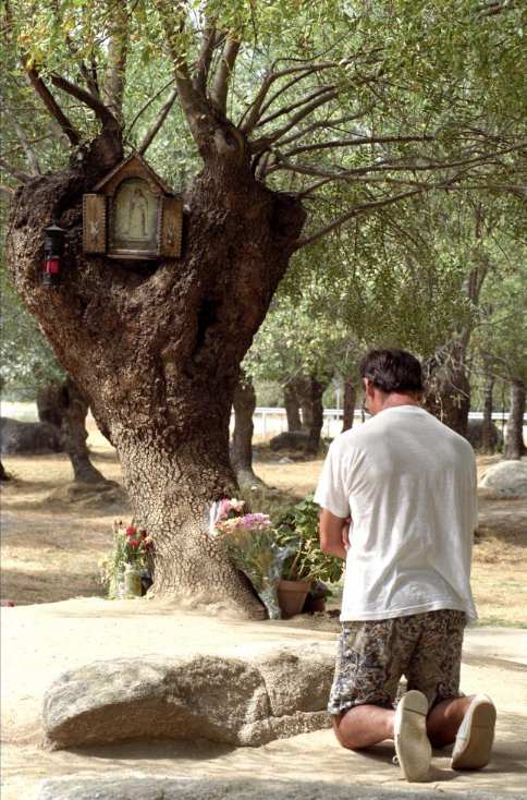 Un peregrino reza en el lugar de las supuestas apariciones. Foto: Efe