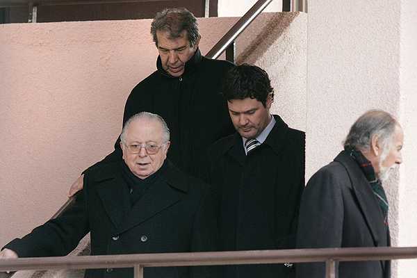 Karadima sale del tribunal junto con sus abogados (Foto El Mercurio)