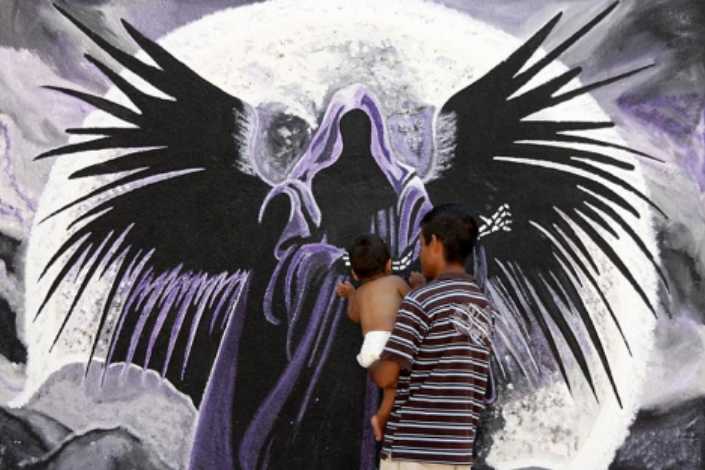Los traficantes de drogas e incluso los residentes de barrios golpeados por la violencia imploran a la Santa Muerte para que los proteja, algunas veces erigiendo capillas con su imagen en la que dejan limosnas, tequila, cigarros y dulces.