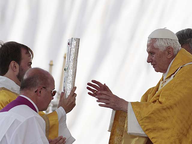 El Papa recibe el Evangelio antes de comenzar su sermón