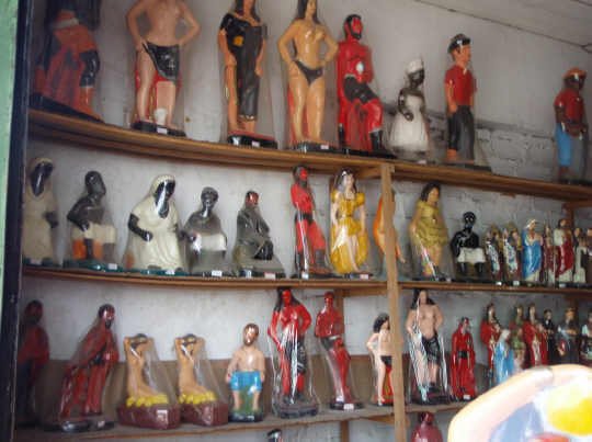 Estantería en una tienda de artículos de umbanda