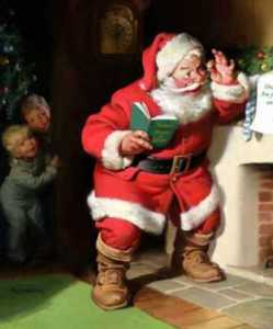 Longinotti: El antecedente más antiguo y directo proviene de la tradición holandesa de Sinterklaas, llevada por este pueblo a Norteamérica (Nueva York fue primero Nueva Amsterdam). Sinterklaas o San Nicolás viste, en la versión holandesa, de rojo y trae regalos para los niños. Viene desde España con varios ayudantes llamados Zwarte Pieten (o Black Peters) cuya misión es castigar a los niños malos o llevarlos a España en una bolsa. El lugar de origen de Sinterklaas puede parecer meramente exótico, pero basta tener en cuenta lo que significó España para los holandeses (Holanda constituía los Países Bajos del Imperio español) y sumar a esto la presencia de los Zwarte Pieten, una suerte de pequeños demonios, para ver lo negativo o abiertamente diabólico. La fiesta de Sinterklaas no es la Navidad sino el 6 de diciembre, aniversario de la muerte de San Nicolás, y así se conmemora todavía en Holanda y Bélgica. Al fundirse las tradiciones en Norteamérica, se trasladó al 25 de diciembre, y Santa Claus pasó a entregar los regalos en Navidad.