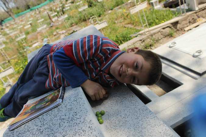 «Vamos yo te llevo a la tumba de Miguel Enríquez, está acá al ladito», me indica Rodolfito que me pide la cámara fotográfica. El niño conoce de memoria cada calle, nicho y muerto insigne de su sector en el cementerio. Él ha pasado buena parte de sus 6 años rodeado de muertos y sus apenados deudos.