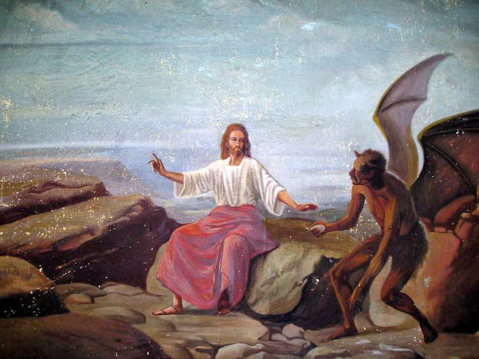 Pintura ‘Tentación de Cristo por el Diablo en el desierto’, de autor desconocido. Se halla en el templo parroquial de San Rafael Arcángel, en la ciudad de San Rafael del Norte, departamento de Jinotega, Nicaragua. (Fuente: nicaraguamaravillosadesconocida.blogspot.cl/