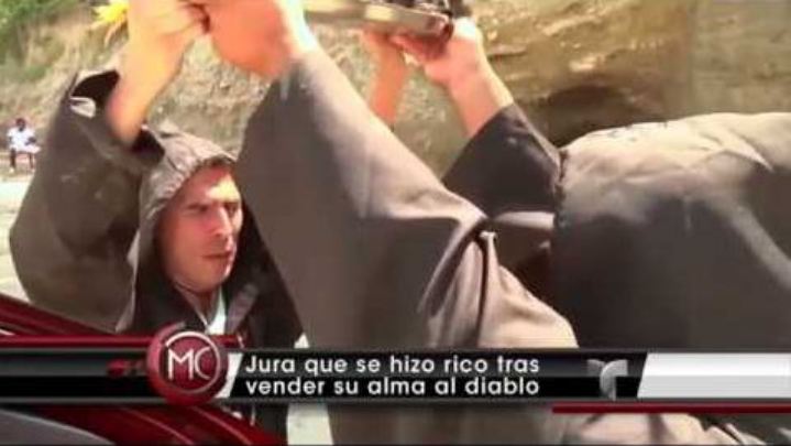 Imagen de un reportaje de televisión sobre el «sacerdote del diablo»