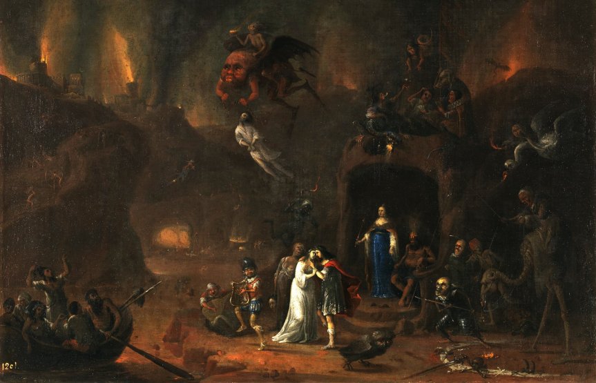 En el medio del infierno había un abismo de tinieblas al que Lucifer, encadenado, fue arrojado, y negros vapores se extendieron sobre él.