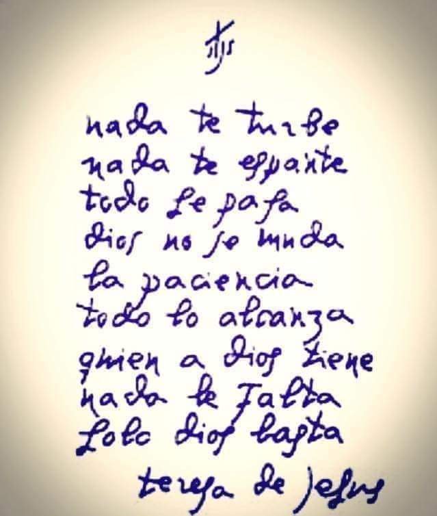 En la festividad de Santa Teresa de Jesús, les comparto unos versos manuscritos de uno de sus más bellos, conocidos y emotivos poemas.