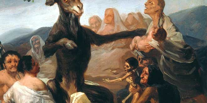 Este lienzo, que critica abiertamente la superchería y la ignorancia, se puede relacionar con algunos grabados de idéntico objetivo pertenecientes a la serie de Los Caprichos: el número 47, Obsequio al maestro y el número 60, Ensayos, en los que también aparecen fetos humanos y el macho cabrío.