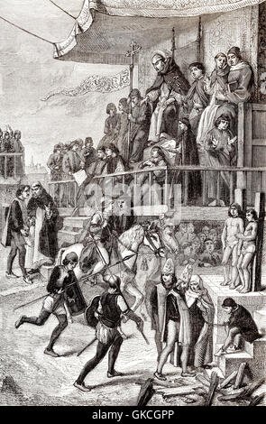 En Logroño, en 1610 se realizó un Auto de Fe contra varias mujeres y algunos hombres del pueblo de Zugarramurdi, en Navarra. Después de torturarlos se consiguieron confesiones y delaciones. 10 mujeres ardieron en la plaza de Logroño. Algunas de ellas ya habían muerto previamente en prisión. El impresor Juan de Mongastón relató y publicó el Auto de Fe en 1611, y Goya, a través de Moratín, seguramente tuvo acceso a este escrito.