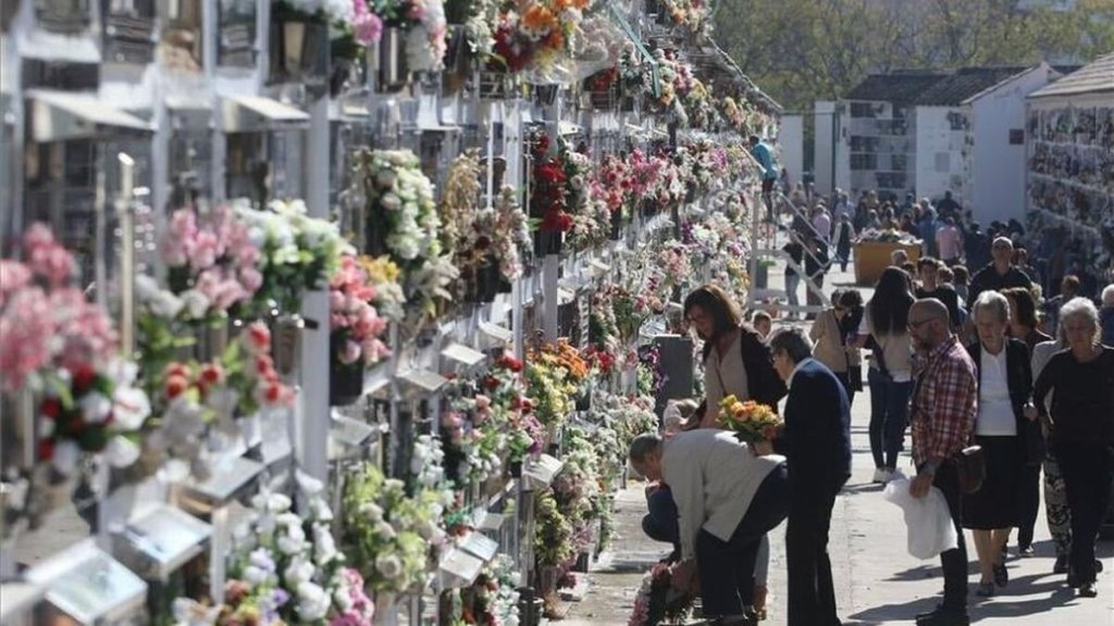 La visita a los cementerios se realiza el 1 y el 2 de noviembre. Es un rito de recuerdo y homenaje a los antepasados. En todas las iglesias se ofician misas en memoria de estos seres queridos que sirven para acortar los supuestos años de purgatorio en el más allá. La estancia de los familiares en el camposanto será más larga si la muerte se ha producido recientemente. En cualquier caso, no puede decirse que sea un hábito generalizado, pues la población que visita los cementerios suele ser la de mayor edad. Muchos sienten una profunda aversión ante cualquier situación relacionada con la muerte y optan por ignorarla, tal vez con la esperanza de que esa actitud consiga alejarla de sus vidas. En todo caso, los familiares visitantes encienden velas durante toda la noche y el cementerio permanece abierto. Ninguna tumba queda desprovista de luz y flores.