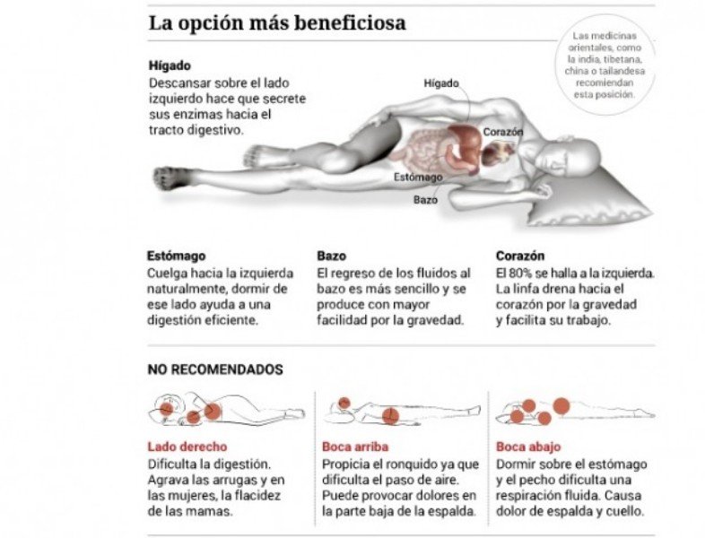 Más del 80 % del corazón se encuentra del lado izquierdo del cuerpo. Si duermes del lado izquierdo la linfa drenada hacia el corazón será impulsada por la gravedad quitando trabajo a tu corazón mientras duermes.