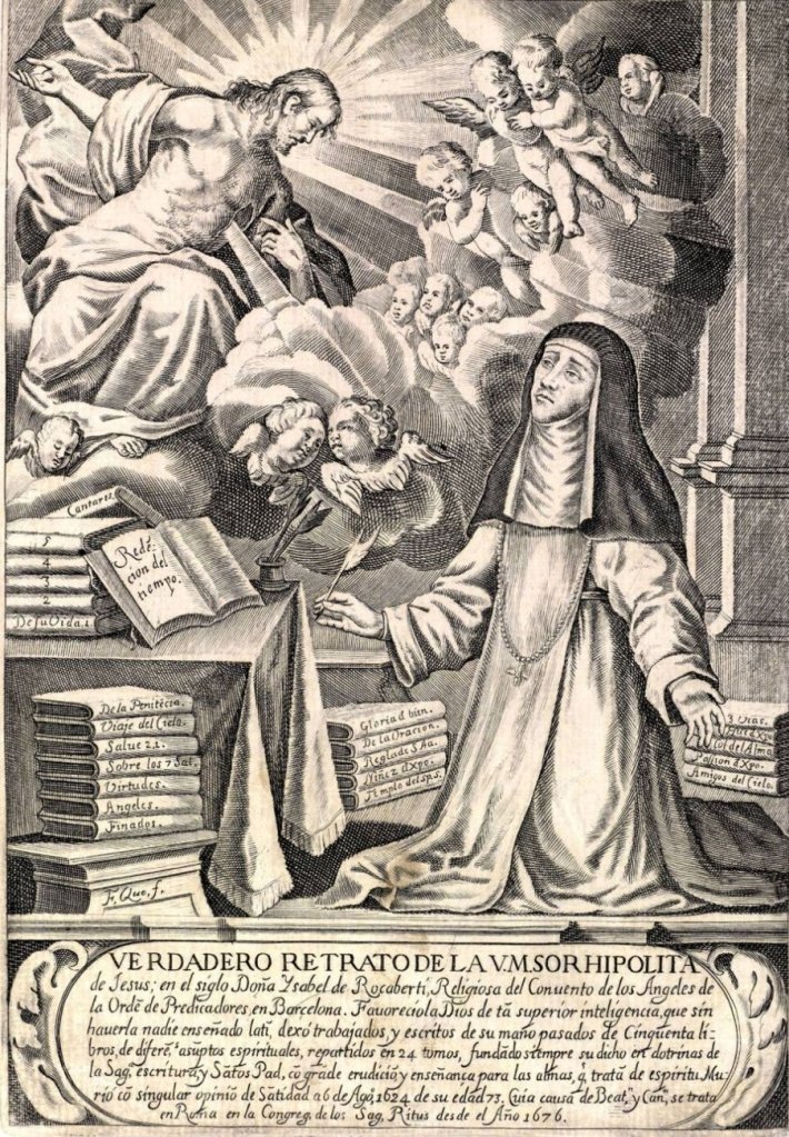 A Hipólita de Rocabertí (1549-1624) se la ha comparado con Teresa de Jesús por su cultivo de la mística y su capacidad para divulgarla a través de la escritura, pero sus tiempos y sus destinos fueron dispares. Al activismo fundacional teresiano, la madre Hipólita opondrá la vida de recogimiento y contemplación propugnada por el tridentismo, forzándose con los años a una verdadera aniquilación del yo. Perdida en Dios, su vida parece expuesta a un pavoroso desenfreno de castigo y mortificación, negándose las comodidades más elementales, como dormir sobre una esterilla. Por ello en sus escritos ahonda en las figuras bíblicas de Marta (acción) y María (contemplación). Ella se identifica con esta última y en su obra Las mercedes recibidas de Dios desarrolla la idea de que su comunión con Él la consigue a cambio de estar siempre enferma (una idea que recuerda la expuesta por Teresa de Cartagena en su Arboleda de los enfermos). La postración corporal en un principio la llenó de melancolía y desconsuelo hasta que la misericordia divina se apiadó de ella enviándole el don de la contemplación y gracias a él, la sabiduría.