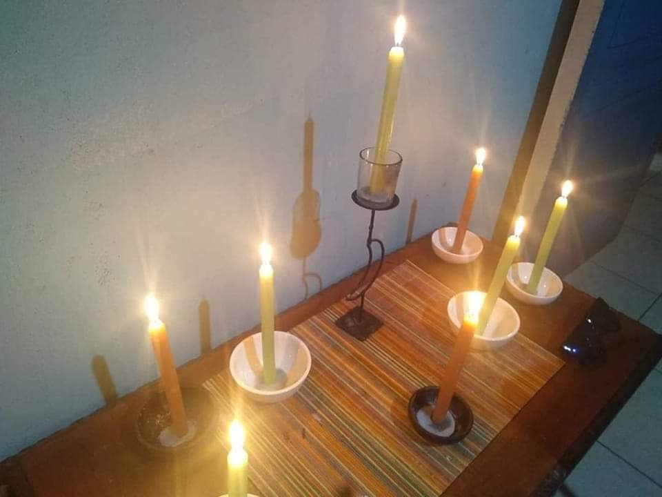 Si observan bien, las velas tienen sombra, que se refleja en la pared. En cambio, la llama de esas mismas velas no tiene sombra, no hay reflejo.