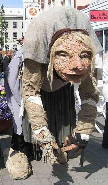 La festividad de invierno en Islandia está asociada a una giganta menos conocida y profundamente inquietante llamada Grýla. Su origen se remonta a la mitología nórdica y la primera mención escrita de ella se encuentra en la transcripción de las tradiciones orales de Escandinavia, la Prose Edda. Aunque en esa obra se la menciona en el siglo XIII como fea y malvada, como la mayoría de los gigantes de la mitología nórdica, no se la asoció con las fiestas de invierno hasta el siglo XIX. La primera mención de esta asociación se encuentra en el poema llamado Poema de Grýla, que describe a sus 13 horribles hijos, conocidos como los Muchachos de Yule.