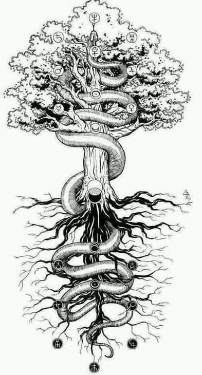 «Para que las ramas de un árbol lleguen al cielo, sus raíces deben tocar el infierno» (Lema alquímico medieval, posteriormente adoptado por Carl Jung).