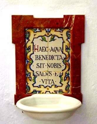 En un lado interior, junto a la puerta de entrada de tu hogar, es muy recomendable instalar una pequeña pila o colocar un pequeño recipiente o pocillo de cristal o cerámica conteniendo agua bendita y crear el hábito de santiguarse cada vez que los miembros de la familia salen o entran de casa. Y para un toque sacramental de protección, cuelga una medalla de san Benito cerca o sobre la puerta, a modo de ‘detente’, para que repela cualquier espíritu negativo que pueda acercarse.